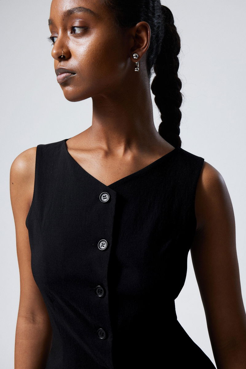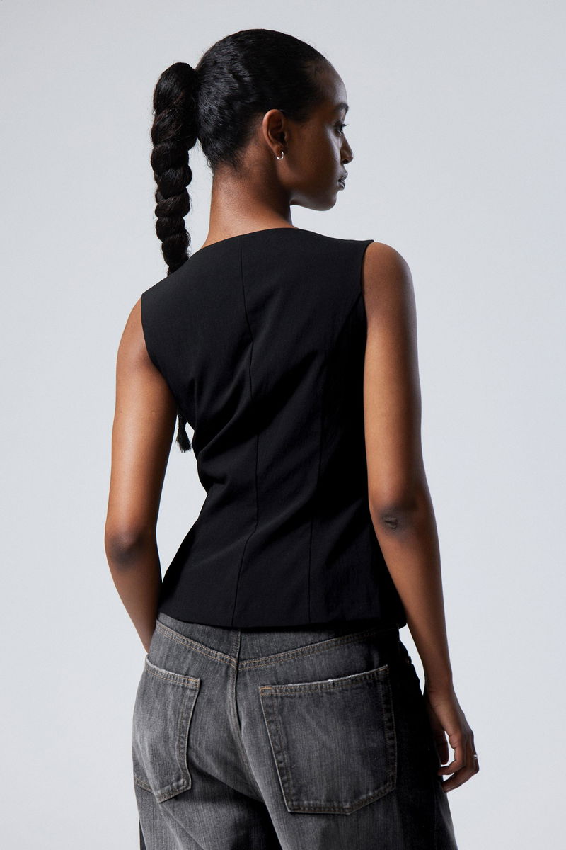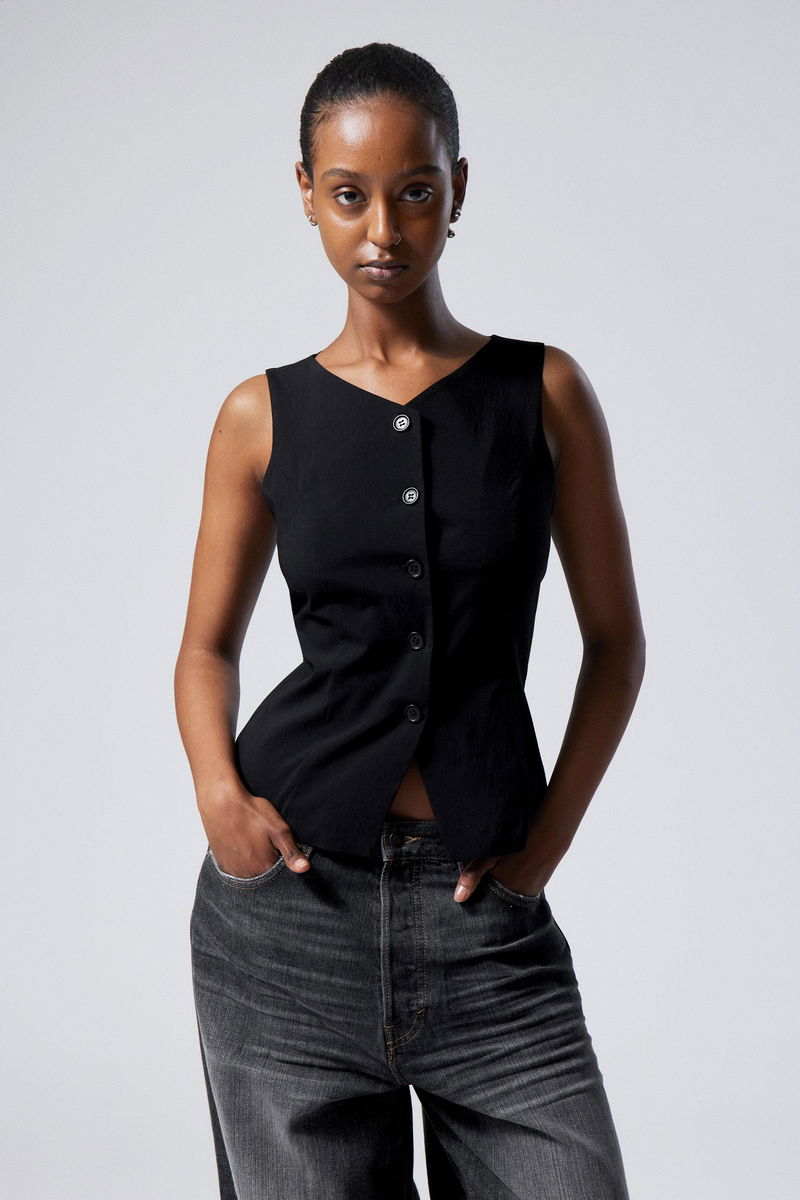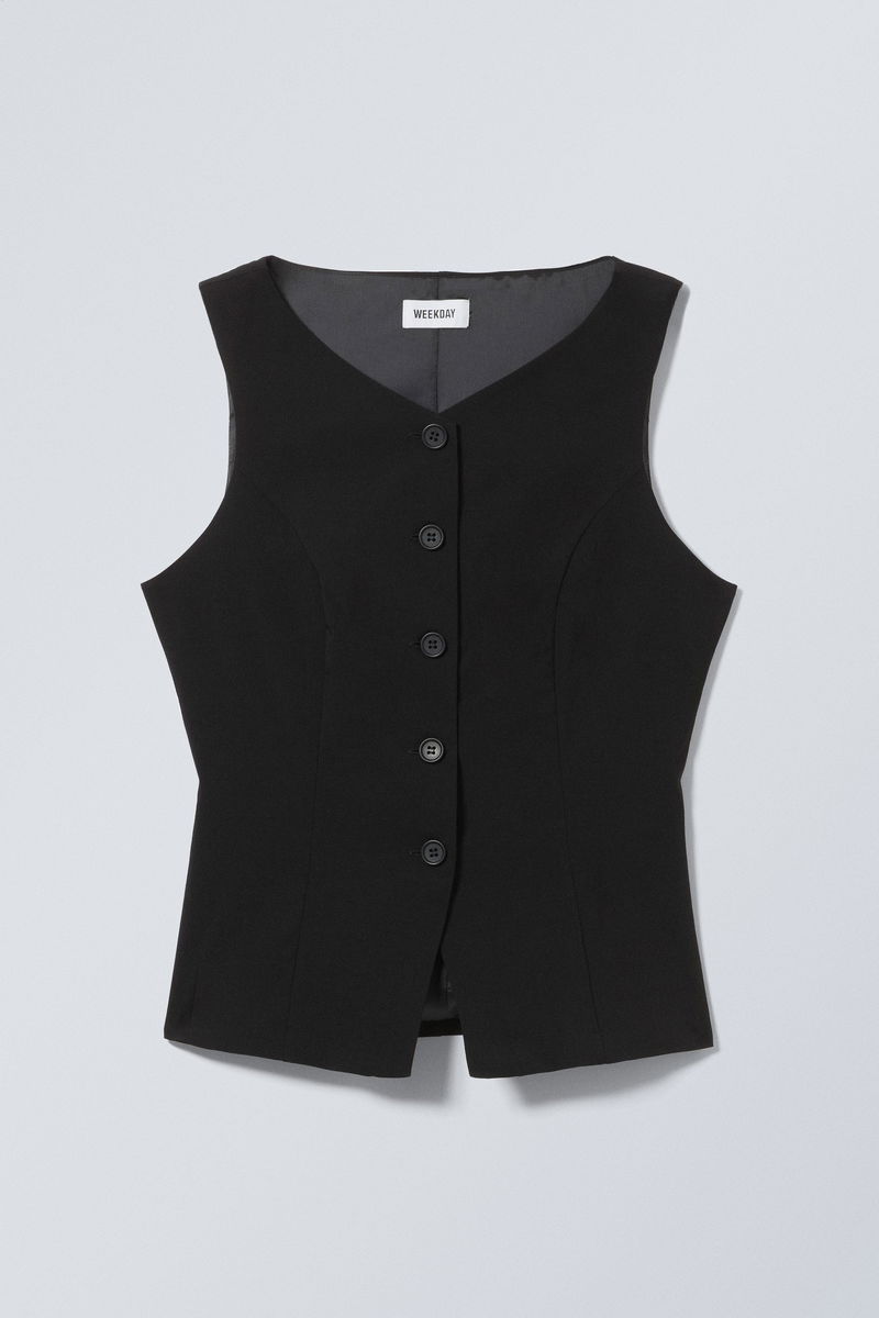 A tailored single-breasted waistcoat with a slim fit crafted from a stretchy viscose and polyamide blend. This sartorial piece has a V-neck, a button front closure, and is fully lined with a recycled polyester twill.