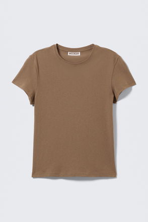 The Frances T-shirt is a cosy T-shirt that can work as a base for a variety of outfits. Cut in a boxy fit, it has a woven, ribbed material, a round neck and cap sleeves. The model is 178 cm tall and wears size small, that measures 78 cm in chest circumference, 45 cm in length and 11,50 cm in sleeve length.