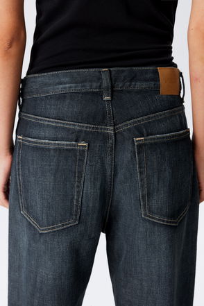 A pair of loose fit jeans with a straight leg and long length. These jeans are crafted from organic cotton rigid denim enhanced with recycled cotton. They feature a classic 5-pocket design, and a zip fly.