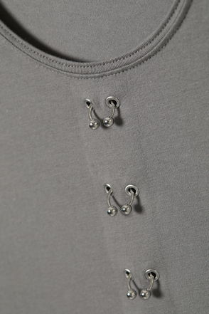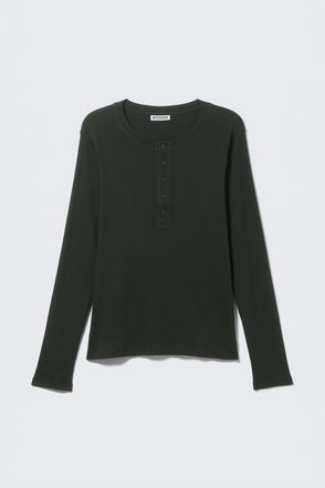 The Grace Long Sleeve is a fine basic piece made of a super soft material with a slightly shiny finish. It has a round neckline and a visible seam running through the back.
