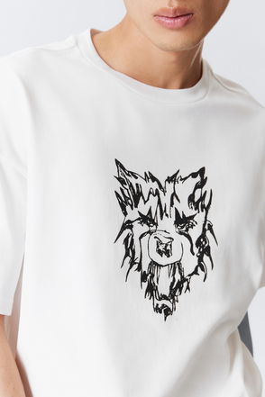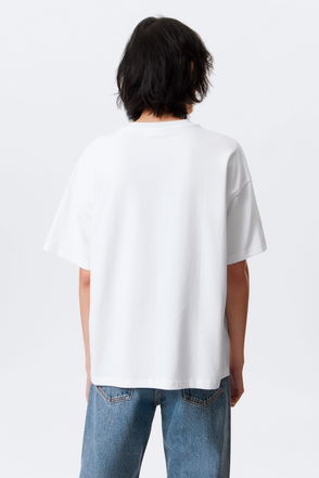 A loose fitted t-shirt made from a soft cotton yarn. This layering favourite features a boxy fit, wrap seams at the rounded neck and dropped shoulders, and twin-stitched hemlines.