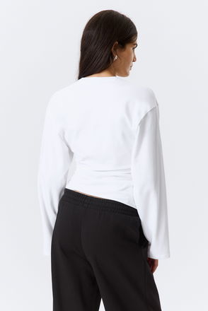 The Grit Long Sleeve is a basic that offers multiple styling possibilities. Made from a fine linen blend, it has a jewel neck and a ribbed finish.