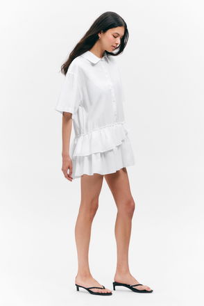 The Huge T-shirt Dress is the ultimate take on an oversized fit, combining the ease of a T-shirt with the character of a dress. Made of soft cotton jersey, it has a ribbed round neck and wide, elbow-length sleeves. adorned with a vibrant orange fruit print at the front and a drink print at the back.