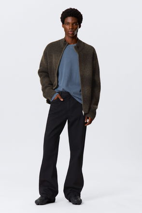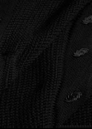 A go-to oversized thick knit cardigan perfect for layering, made from a soft recycled polyester and polyamide yarn enhanced with RWS wool, RMS mohair, and a touch of recycled elastane for extra flexibility. It has dropped shoulders giving it a cocoon feel, ribbed edges, a v-neck, and four medium sized front flat buttons.