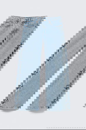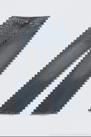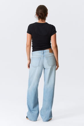 A pair of low-rise jeans with a loose fit, wide leg, and full length. Crafted from rigid cotton denim enhanced with recycled cotton.