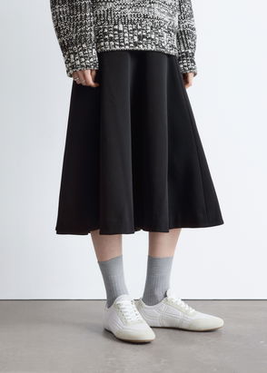 Irma Skirt is a satin style cut on bias for an elegant drape. A midi length, it features an elasticated waist and a concealed zip closure on one side.