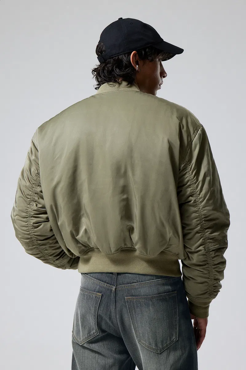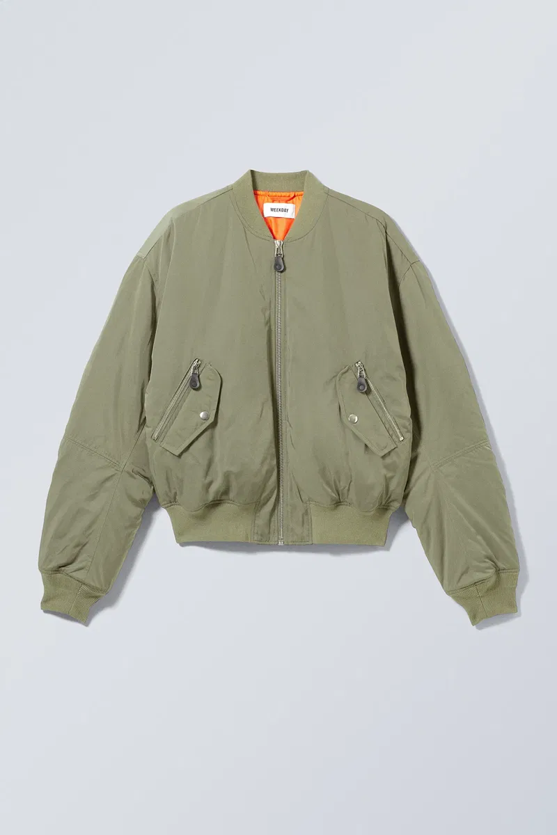 A stand-out bomber jacket made from recycled polyester enhanced with a touch of elastane for extra flexibility. It has a zip-up closure, slightly dropped shoulders, rounded sleeves, side flap and zip pockets, ribbed cuffs and hemline.