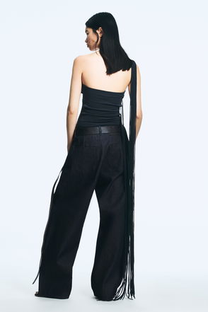 The model wears size 38 that measures 70,5 cm in relaxed waist circumference, and 80 cm at inseam.