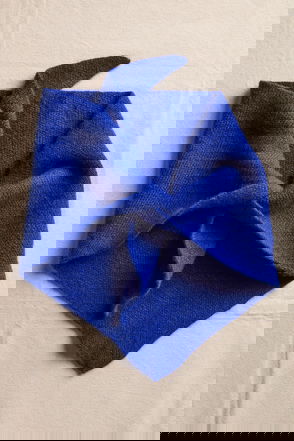 A knitted triangle head scarf crafted from a soft and stretchy recycled polyester yarn. It features 40 cm long tie bands, measures 26 cm from front to back, and has a 54 cm face opening.