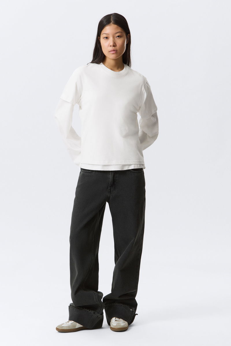 A double-layered T-shirt crafted from soft cotton, featuring a short-sleeve top layered over long sleeves for a clean, built-in styling effect. Designed with a regular fit and classic crew neckline.