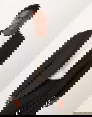 A double breasted blazer in regular fit made from a crisp and lightweight taffeta fabric in recycled polyester. Details include classic clean tailoring such as two lower front flap pockets, a slanted welt pocket on the chest, four kissing buttons on the cuffs, and a back vent.