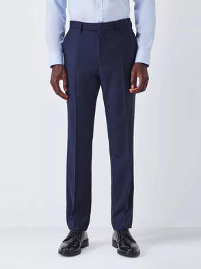 A pair of regular fit straight leg suit trousers made from a soft mid-weight quality cambric. This go-to pair has side slant and back welt buttoned pockets, back darts, front and back creases, a zip fly with a button, a fly shield and binding, and an extra inner button.