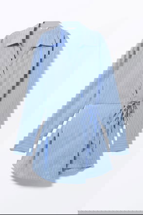 A long-sleeved mini shirt dress crafted from lightweight cotton.