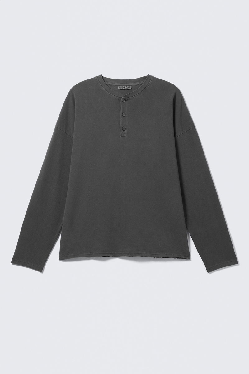 Loose Long-Sleeved Henley T-shirt