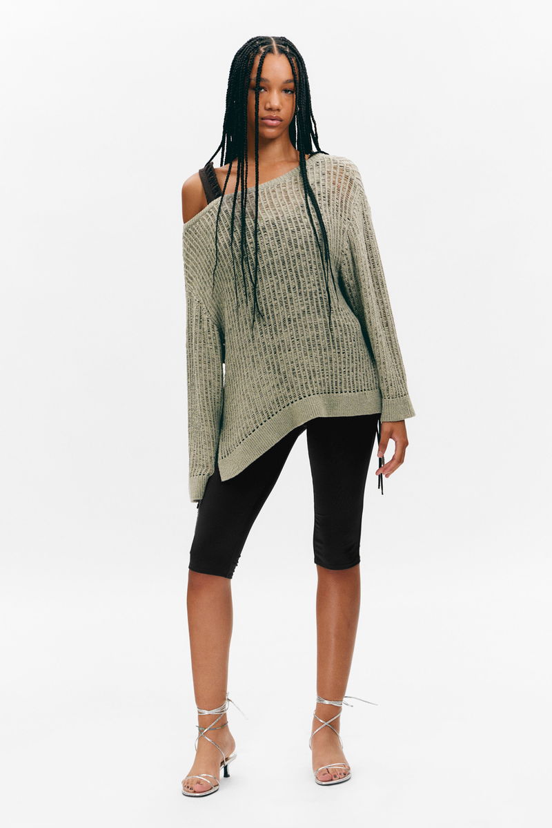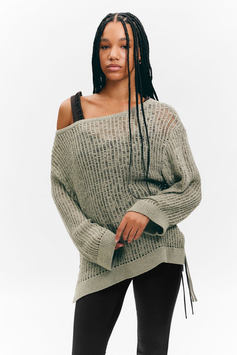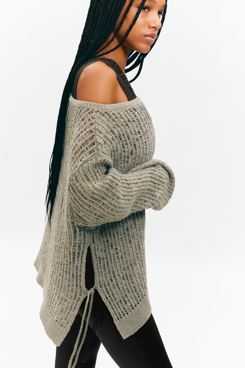 Loose Open-Knit Side Slit Sweater