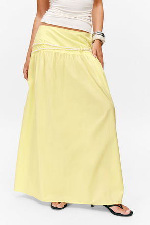A bias-cut maxi skirt with a low rise crafted from a smooth woven satin fabric.