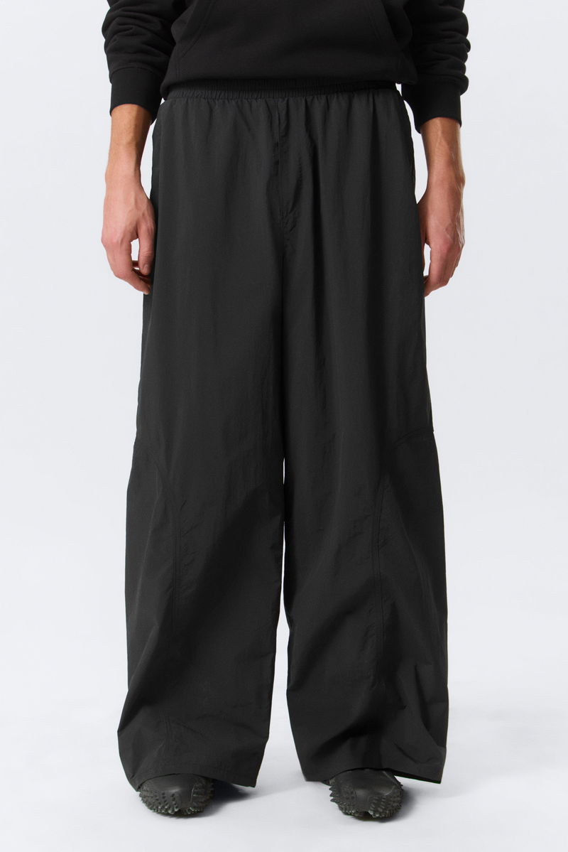 Mid Rise Loose Baggy Leg Nylon Trousers
