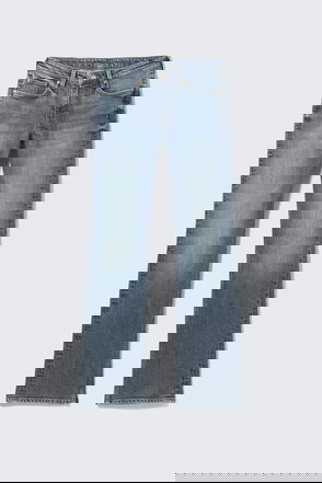 A pair of mid rise jeans with a regular fit, bootcut leg and long length.