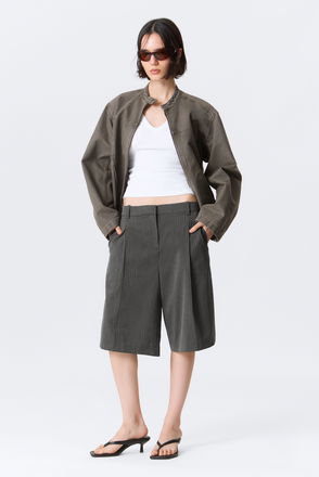 The Nori Chinos Shorts are a pair of seasonal knee-length trousers in classic chinos quality. They have a high waist and wide legs with pleats at the top.