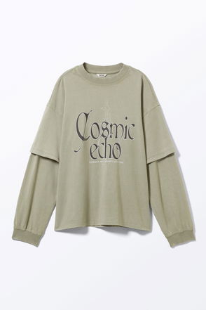 A long sleeve double layered t-shirt, made from a soft cotton jersey. This favourite features an oversized fit, a round neck and folded hemlines.