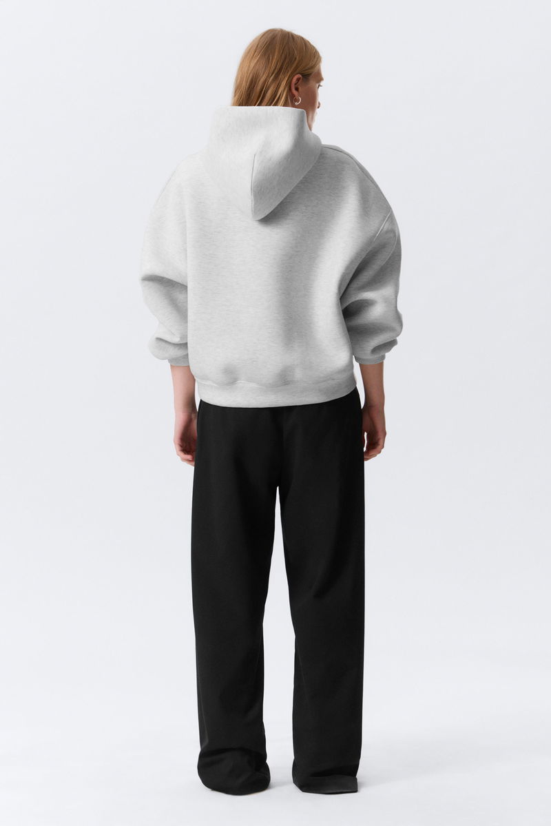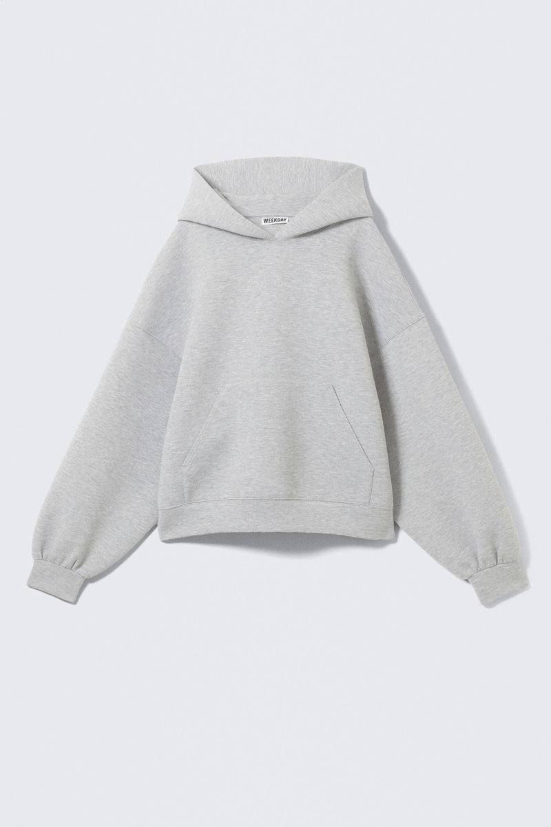 A scuba hoodie cut to an oversized fit. It features a roomy hood, dropped shoulders, a kangaroo pocket, and smooth cuffs and hemline.