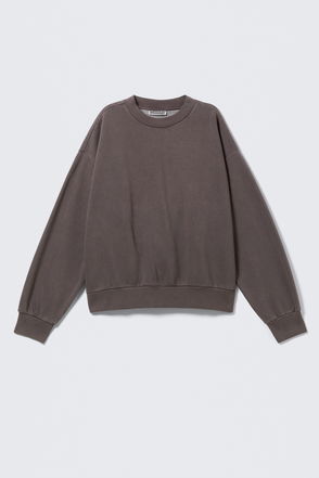 A cosy oversized sweatshirt made from a soft 80/20 organic cotton and recycled polyester blend. It has a slouchy silhouette with dropped shoulders and ribbed hems.