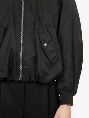 A short padded bomber jacket crafted from recycled polyester twill, featuring a classic collar, sturdy front zipper, roomy sleeves, and heavy ribbed edges.