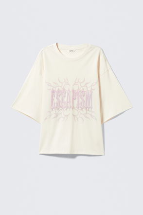 An oversized t-shirt made from a soft cotton jersey with a touch of elastane to enhance its boxy form and draping. It has a ribbed crew neck, elbow length sleeves and falls just at the hips.