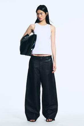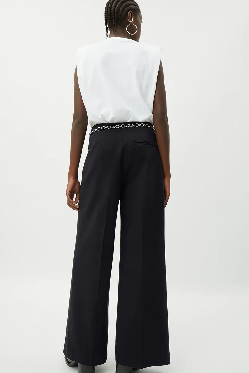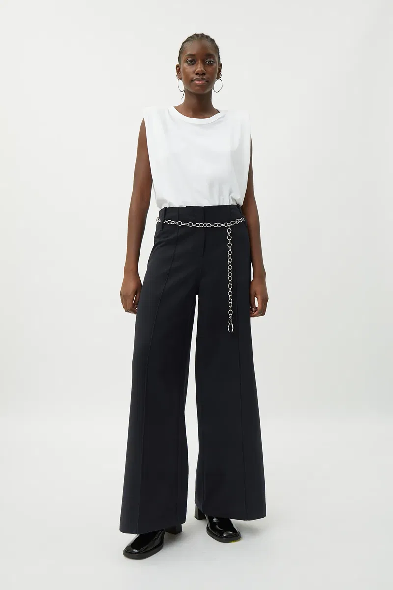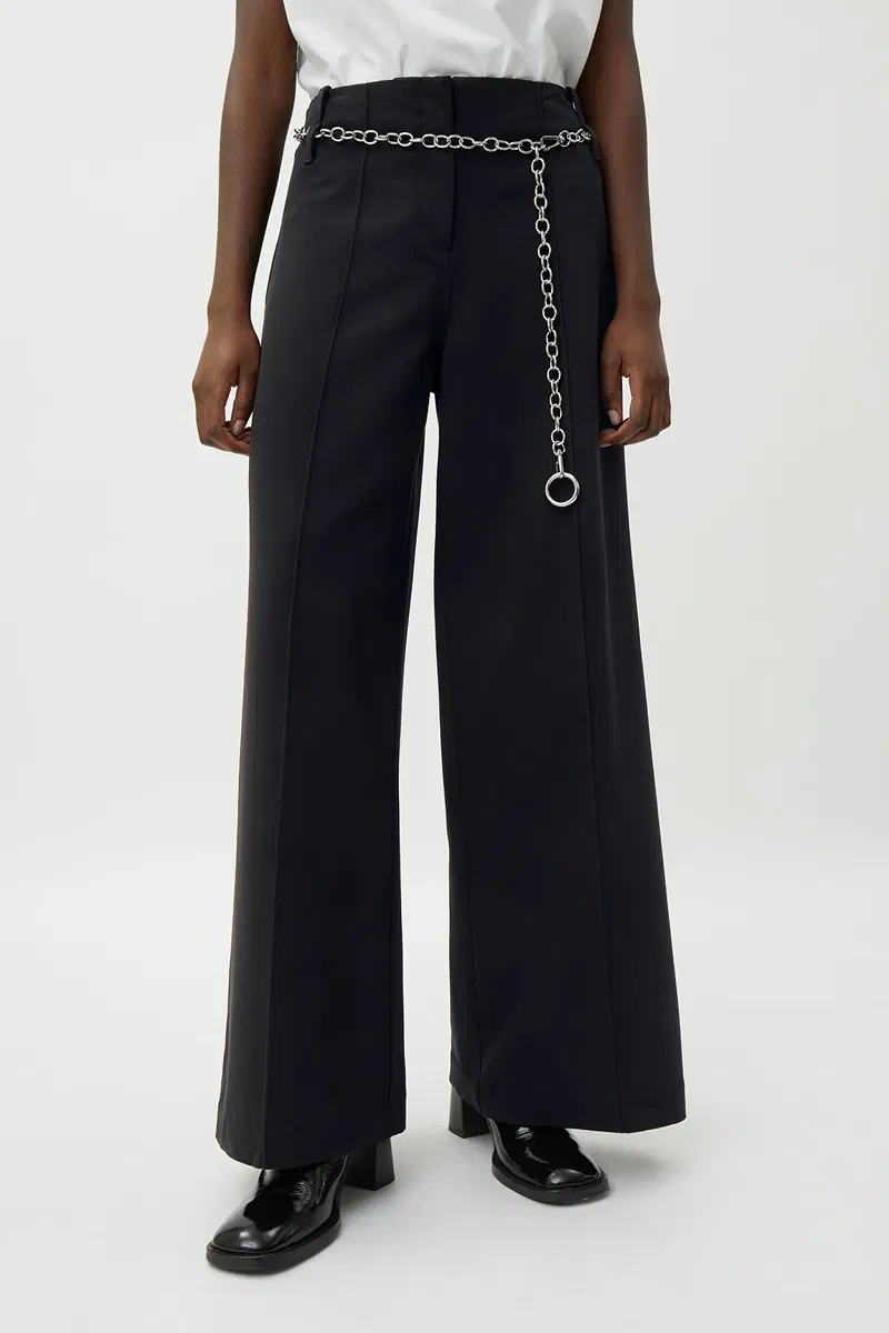 The Petra Trousers are made of a soft twill material that gives its wide legged floor sweeping silhouette a nice structure and flow. They have a stitched front creases, a seamless waist with double belt loops for optional waistlines, and a hidden front zip and button.