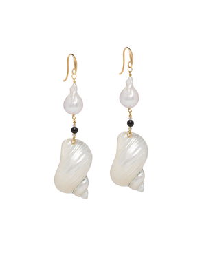 A pair of asymmetrical earrings crafted with a silver-tone finish. Designed with sculptural barbell details and seashells, each piece is unique in shape and tone. Secured with hinged hoop fastenings.CompositionOther: Zinc 55%, Steel 45%Additional material informationShell: Recycled zinc 55%Product No.1291004001