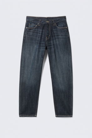 Pine jeans are our loose fit with a medium waist and tapered legs. They are made of classic, non-stretch denim. This pair comes in a softly washed out black.