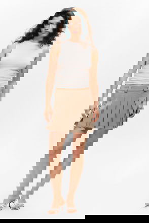This quilted mini wrap skirt is lightly padded and made from a ripstop recycled polyester fabric. Details include gatherings at front and closes with two press buttons.