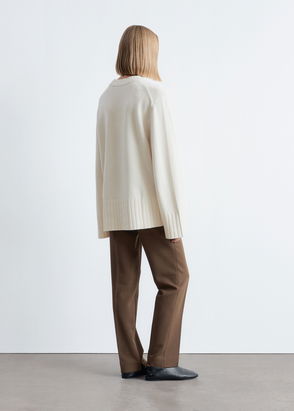 A lightweight knitted V-neck sweater with a relaxed silhouette, crafted from a soft, sheer yarn blend for breathable comfort.