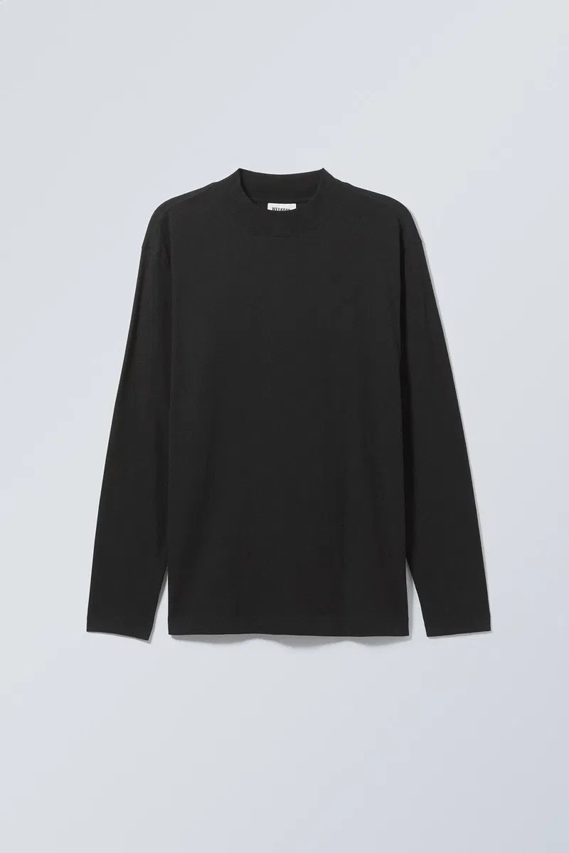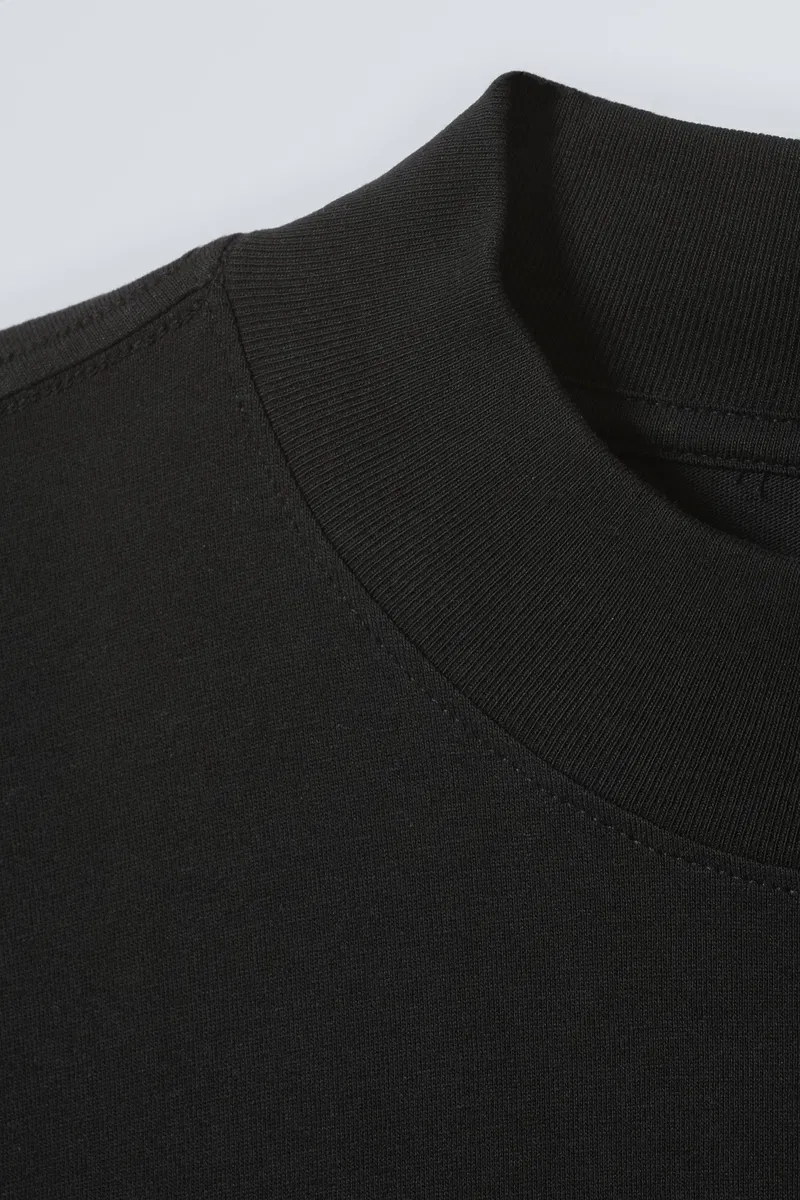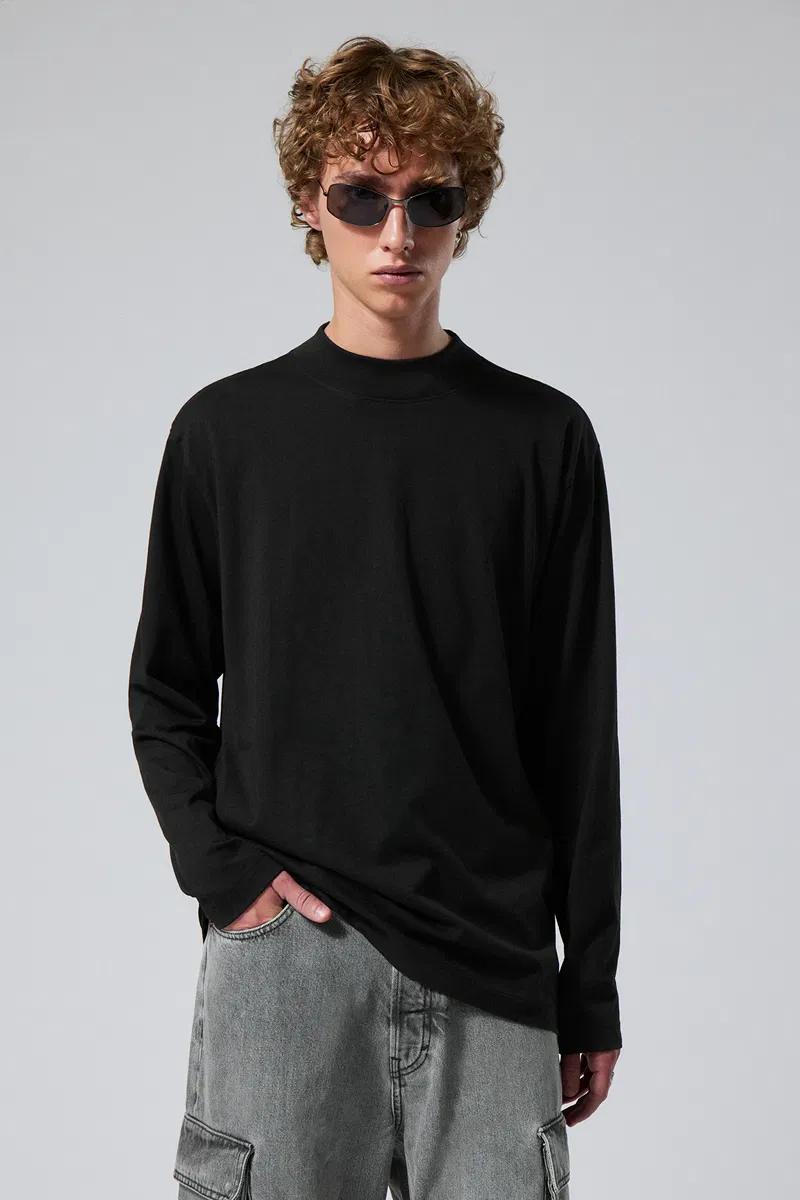 A go-to everyday long sleeve top with a regular fit, made from a soft cotton jersey with a touch of recycled polyester. It has a mock neck and folded hems.
