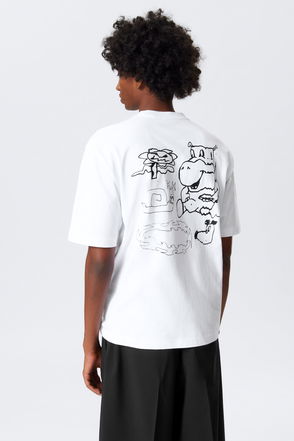 A loose fitting relaxed T-shirt made from a soft 100% organic cotton jersey. It has dropped shoulders, a ribbed crew neck and short sleeves.