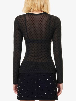 A long-sleeve mesh top adorned with rhinestones, crafted from stretchy recycled polyester. This fitted layering favourite features a round neckline and folded hems.
