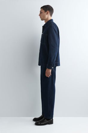 A slightly oversized overshirt that is just right for warmer days made from a linen cambric fabric. It has front flat buttons, a regular pointed collar, front patch pockets and side pockets, and a back middle seam from the yoke.
