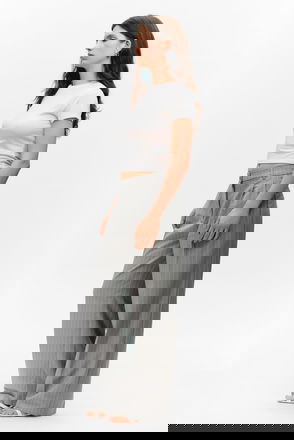 A pair of cozy velour sweatpants made from an ultra soft organic cotton and poly blend. They are slightly flared at the bottom and have an elasticated waist with a drawstring.