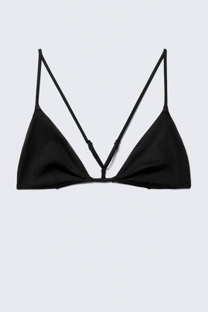 A minimalist triangle bikini top with a ruched centre and clean finish. Crafted from stretchy fabric and fully lined for a smooth silhouette.