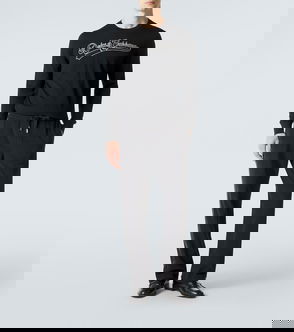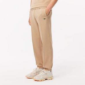 A pair of wide leg sweatpants made from a thick soft fleece lined cotton jersey. They have an elasticated drawstring waistband, side slit pockets and a back patch pocket.