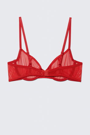 A comfy mesh bralette made from a soft and stretchy recycled polyamide enhanced with recycled elastane for support and flexibility. It is a pullover style and has a deep v triangle front, adjustable straps.