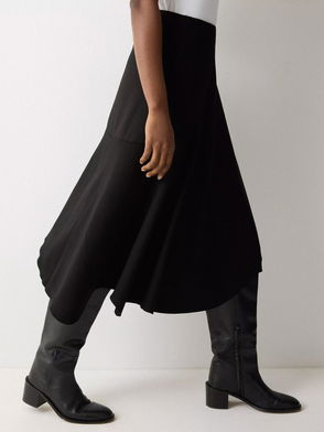 A sheer ankle length skirts crafted from a soft cotton crepe fabric. It has a neat rouleau tie-strap at the waist, French side seams, and a tiered bottom hem.