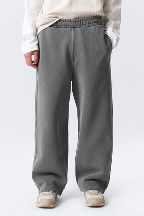 A pair of sweatpants crafted from a chunky scuba fabric with a recycled polyester and viscose blend, enhanced with a touch of recycled elastane. They feature an elasticated drawstring waistband, has side welt pockets, a patch-on back pocket, and elasticated hems.