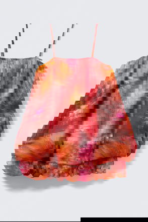 A sleeveless mini dress crafted from cotton twill, designed with a fitted bodice and a flared drop-waist hem.