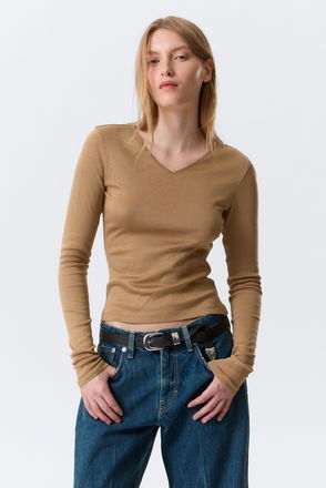 A go-to everyday long sleeve top with a slim fit made from a soft cotton jersey and a touch of recycled elastane for extra stretch and comfort. It has a round neck and straight hems.