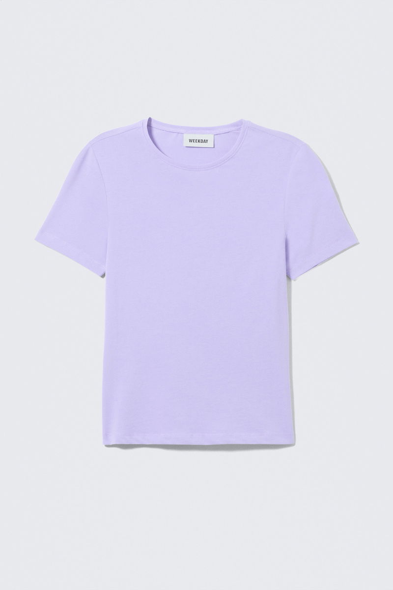 A go-to everyday t-shirt with a slim fit made from a soft cotton jersey and a touch of recycled elastane for extra stretch and comfort. It has a round neck and straight hems.