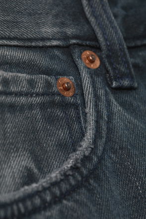 A pair of loose fit straight leg jeans made from an organic cotton rigid denim enhanced with recycled cotton. They have a medium rise with a relaxed fit throughout the hips and seat.