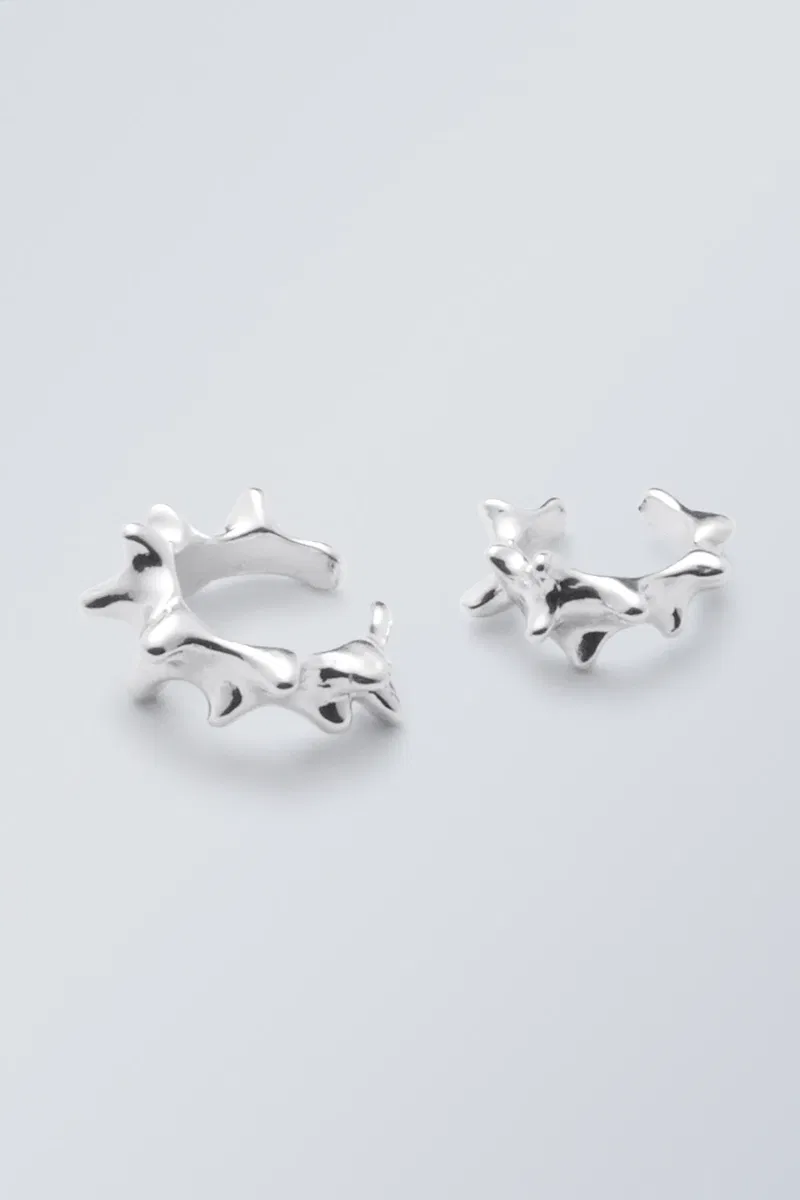 A pair of spikey ear cuffs made from recycled zinc. Whether you’re looking for some extra shine or a bold statement piece, these ear cuffs will add the right touch of attitude to your look.