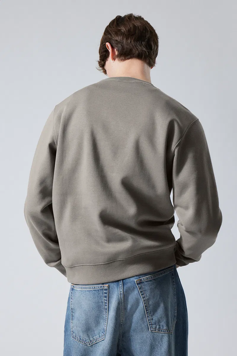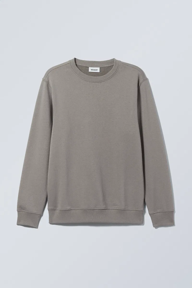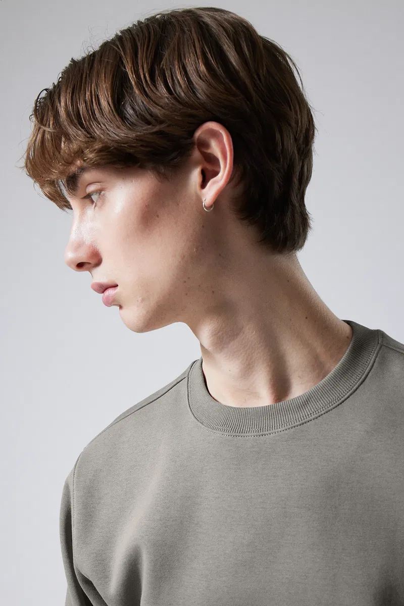 A slightly oversized sweatshirt made from a soft cotton fleece jersey enhanced with recycled polyester. It is slightly oversized, has dropped shoulders, a crew neck, and ribbed hems.