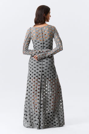 The Storm Dress is a dreamy maxi, perfect for the holiday season. Adorned with subtle floral print, it has a loose fit, a ruffled skirt and a stand collar. The model wears size small, that measures 109 cm in chest circumference, 130 cm in length and 26 cm in sleeve length.